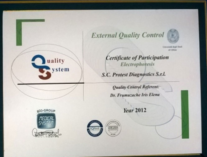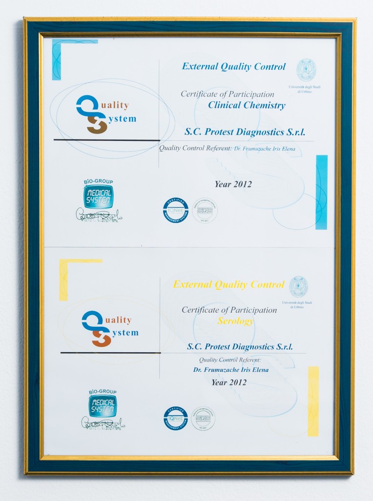 Protest Diagnostic s-a acreditat conform standardului SR EN ISO 15189 :2007, acreditare care s-a mentinut. Acest standard international defineste cerinte de competenta si calitate specifice laboratoarelor medicale.